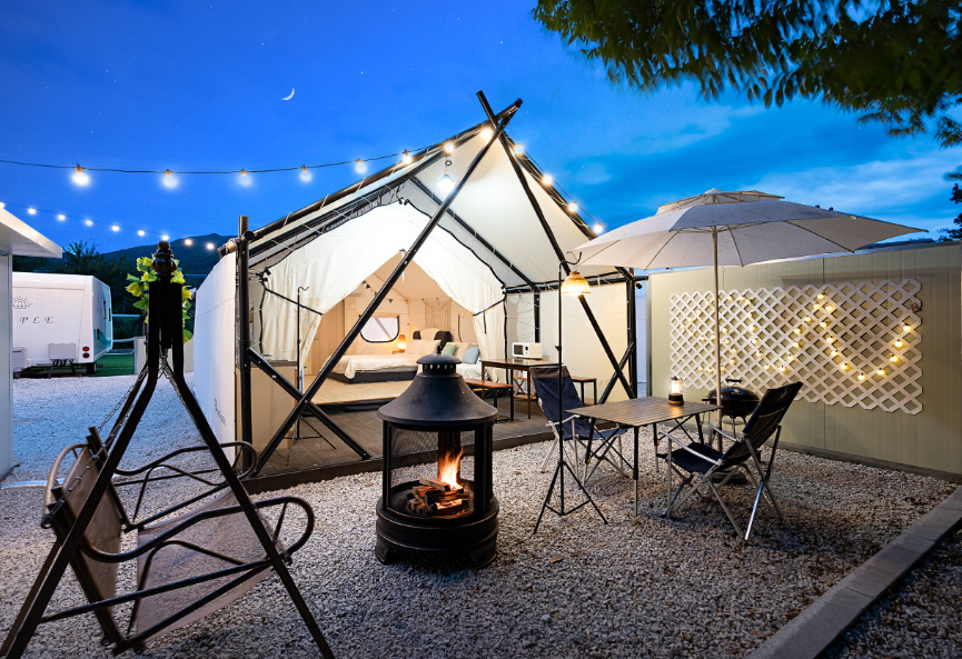 포천 글램파크 캠핑장은 사계절 온수 수영장과 넓은 잔디 공원이 있고 세 가지 타입의 다른 존에서 각각 다른 뷰를 볼 수 있습니다. 실내는 베드부터 거실, 주방까지 원룸 형태로 되어 있어서 동선이 편하고 화장실과 샤워장도 같이 있어서 다른 사람들과 부딪힐 일이 없습니다. 이곳의 장점은 야외에 온수풀이 있어서 아이들과 놀기 편하고, 예약제로 사용할 수 있는 핀란드식 사우나도 있어서 여행의 여독을 풀기에 좋으며 곳곳에 기념이 될 수 있는 포토존도 있어서 추억을 남기기에도 좋은 곳입니다.