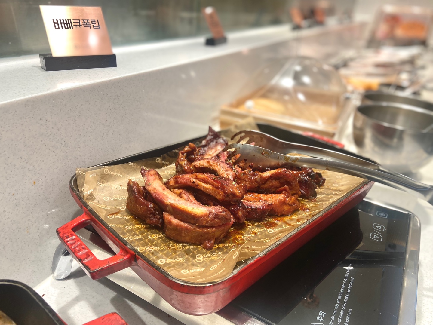 개인적으로 추천하고 싶은 음식은 연어 귀이와 등갈비 BBQ~ 등갈비 BBQ 양념이 쎄지 않아서 먹기 넘 좋았어요~ 넘 짜면 다른 음식 먹을 때도 입맛이 버려져서 별로인데, 쿠우쿠우 파주 운정점은 BBQ도 잘 하더라구요~