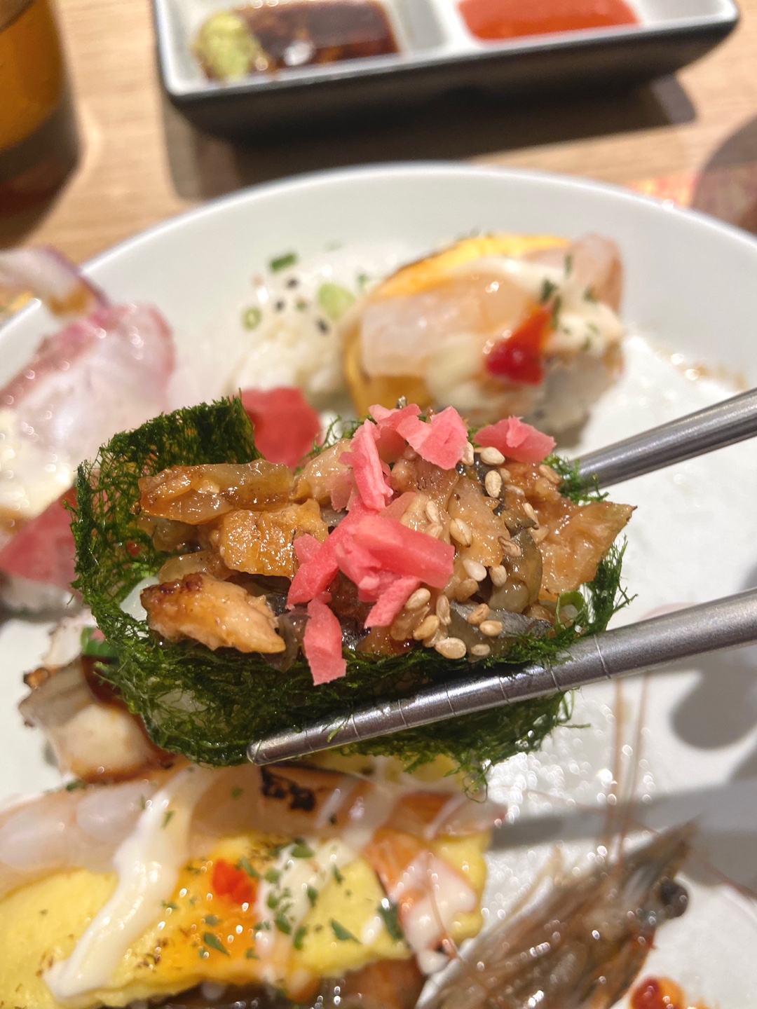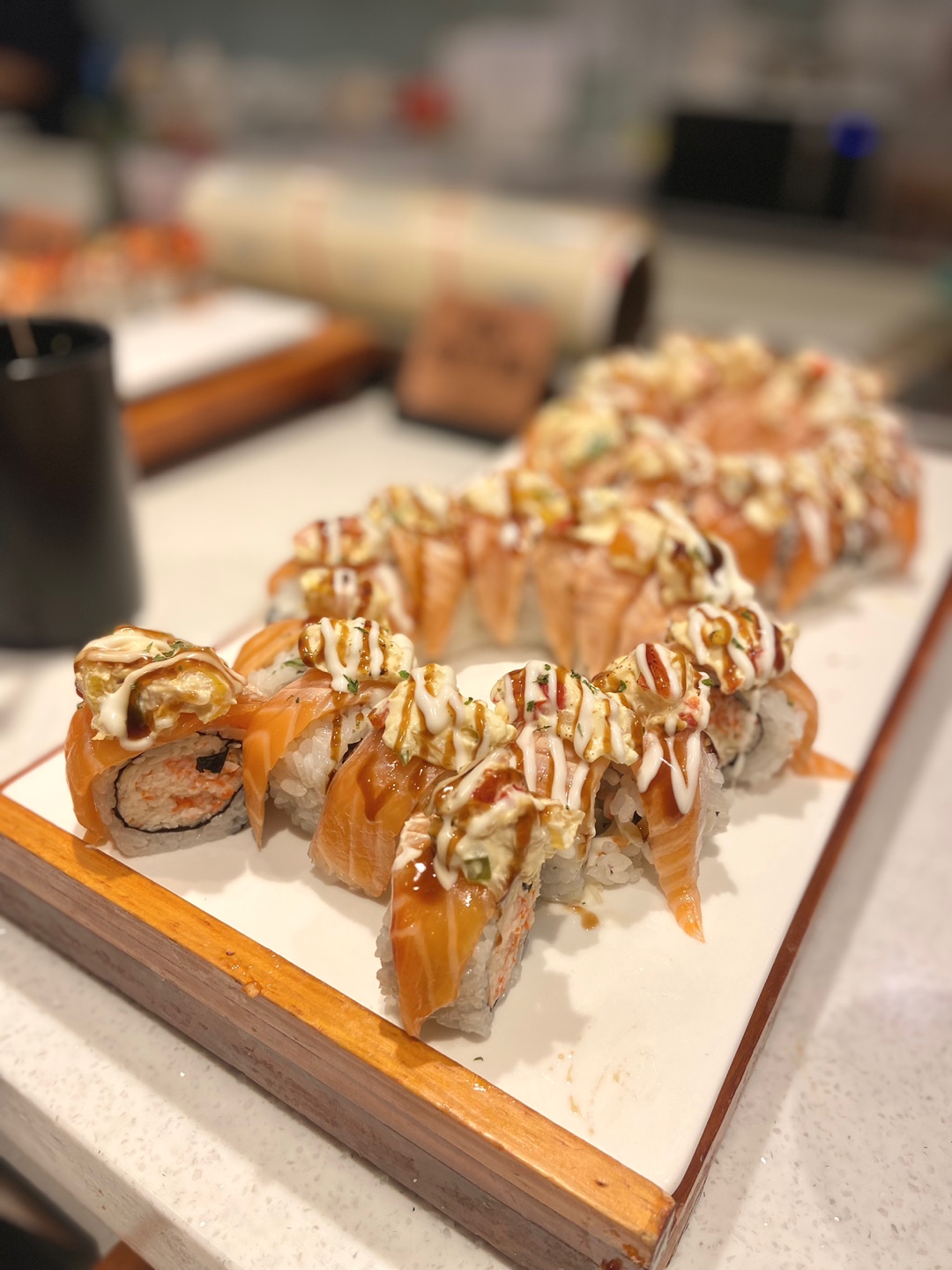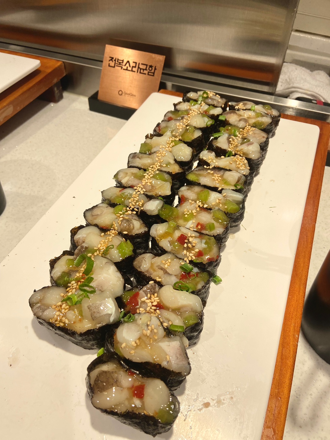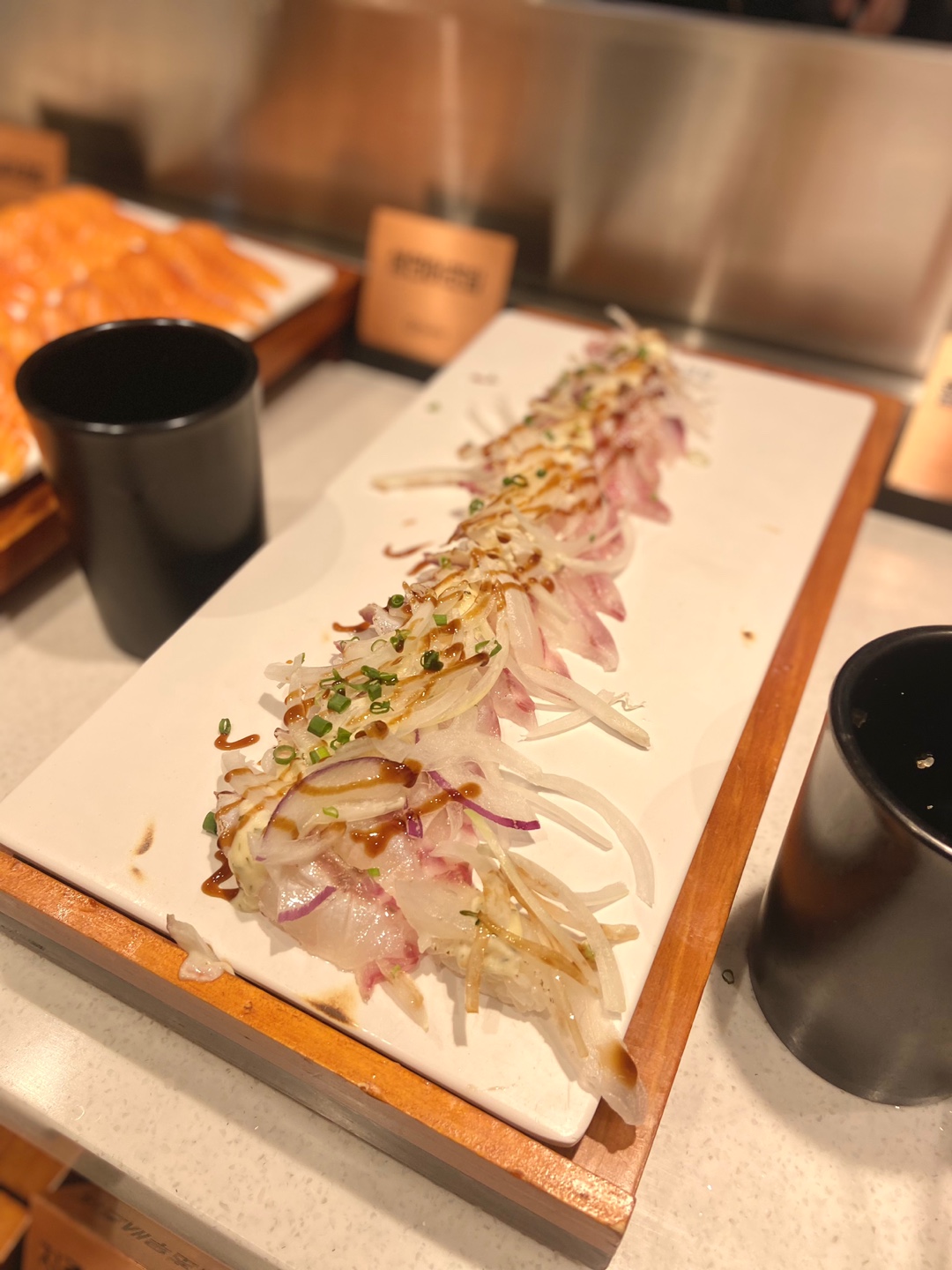 저희는 평일 오후 7시쯤 방문했는데요, 생각보다 좌석이 넓게 분포되어 있어서 바로 이용할 수 있었습니다. 테이블 간격이 그렇게 가깝지 않았고 친구, 가족, 동료 모임 등 다양한 형태로 착석해서 즐기기 깔끔한 구조였어요. 사진을 못 찍었는데 스시쪽 라인 안쪽에 보면 돌잔치나 피로연 등을 할 수 있는 룸이 따로 있는 것 같더라구요. 이 부분은 궁금하신 분은 전화 문의 해보시는 걸 추천드립니다.