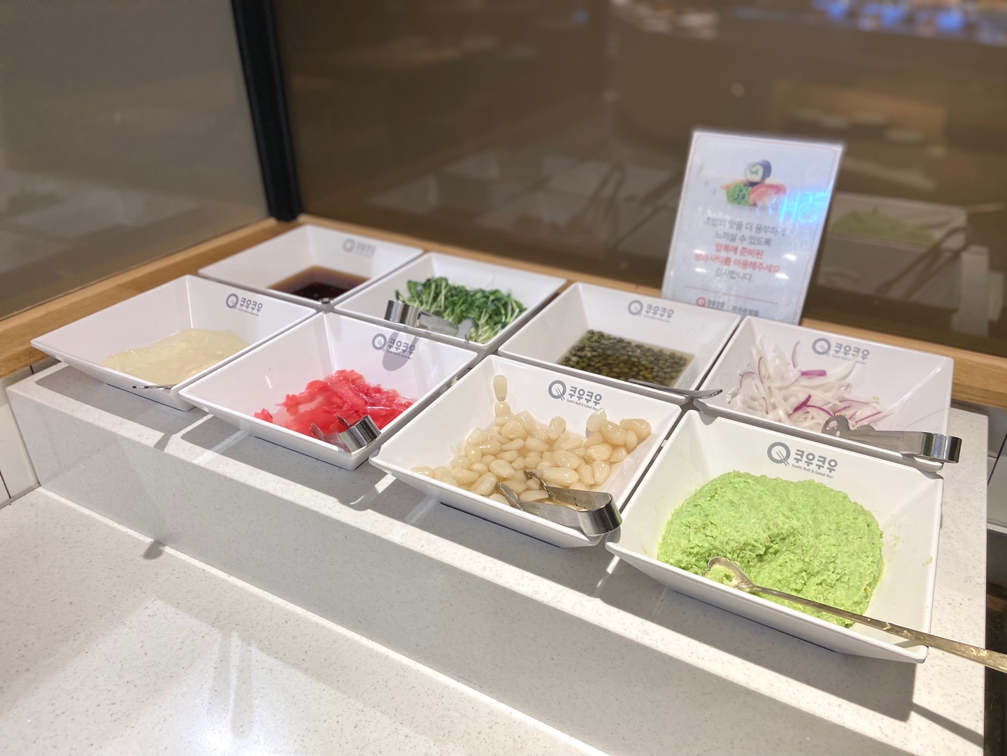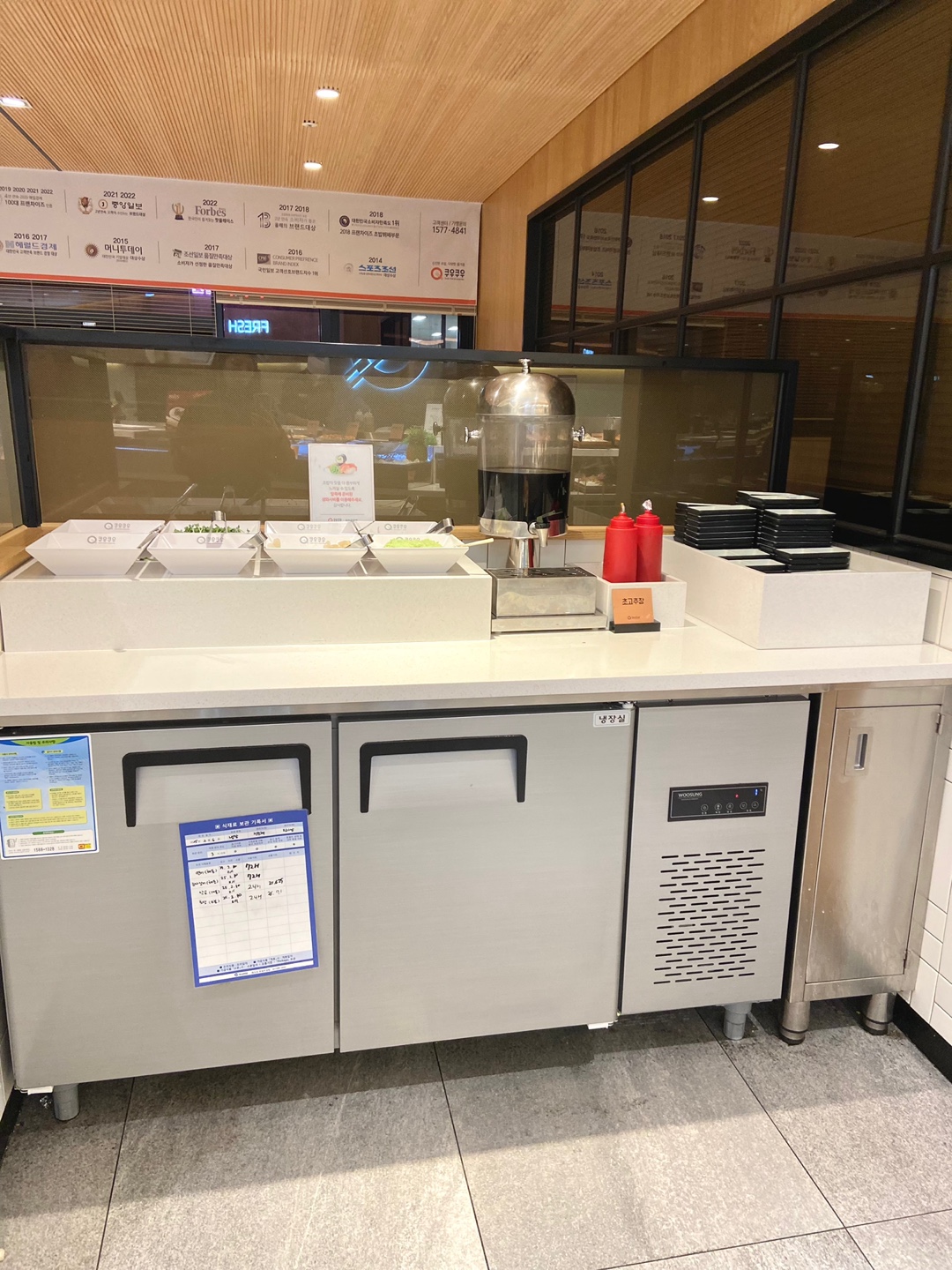 스시라인 왼쪽에 보면 이렇게 간장과 와사비, 초생강, 락교, 무순 등 스시 드실 때 필요한 간장 양념 코너가 있어요. 저는 초밥 셋팅 비주얼에 눈이 멀어서 처음에는 못봤는데 동생 일행이 가져오는 것 보고 다시 가지러 갔습니다. ^^