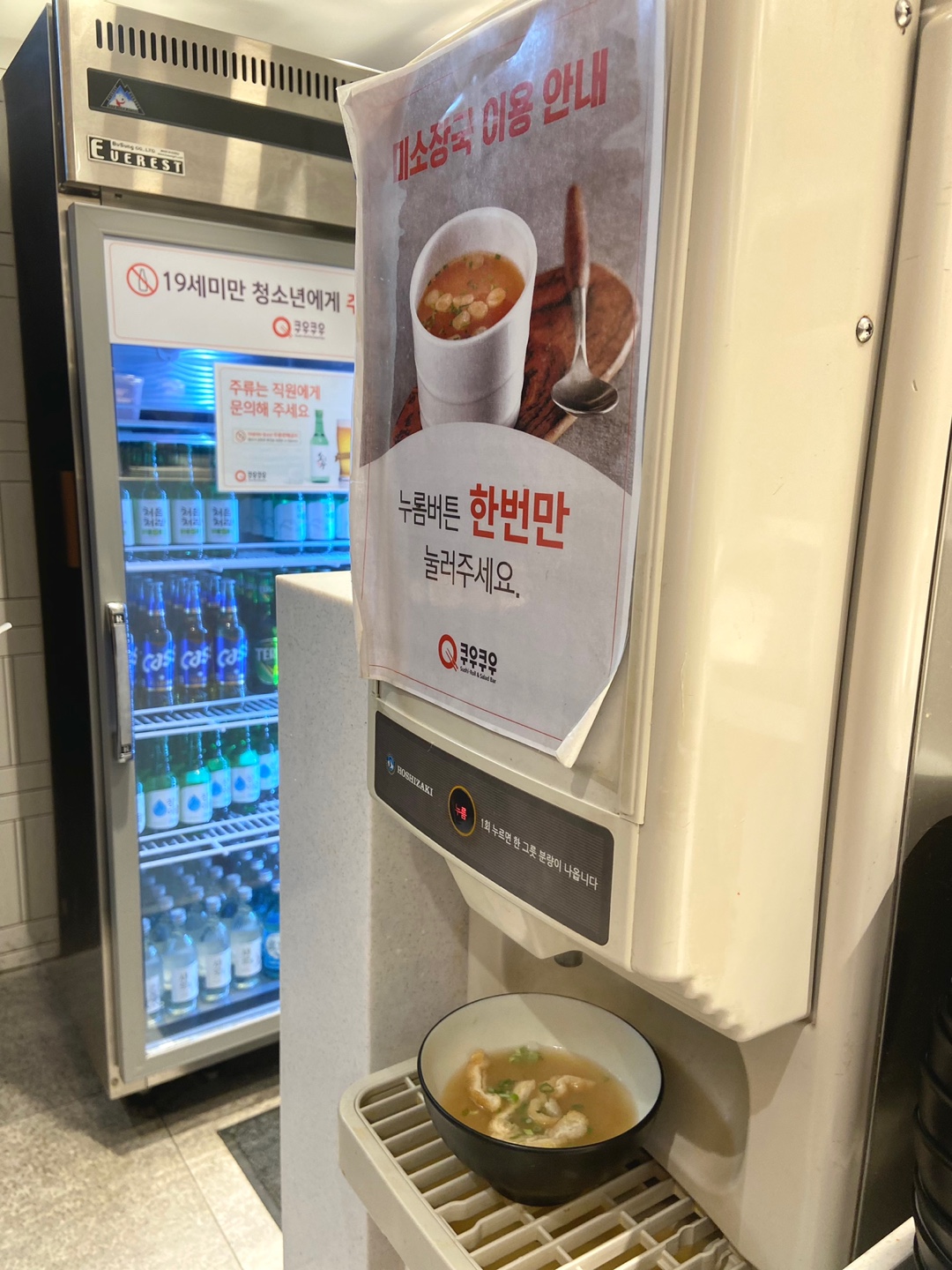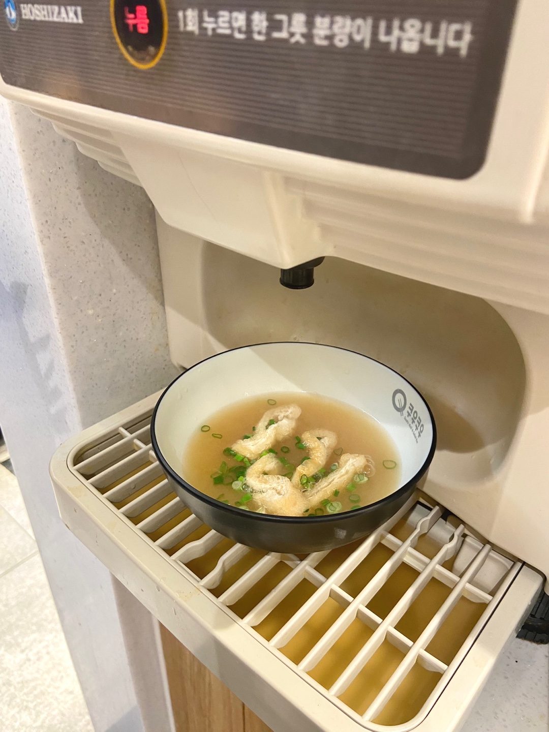 스시코너 맨 안쪽까지 오시면 장국을 담을 수 있는 머신이 있습니다. 저는 바로 조리해주는 우동보다 이 장국이 스시에 더 잘 어울리는 것 같아서 잘 먹었어요~