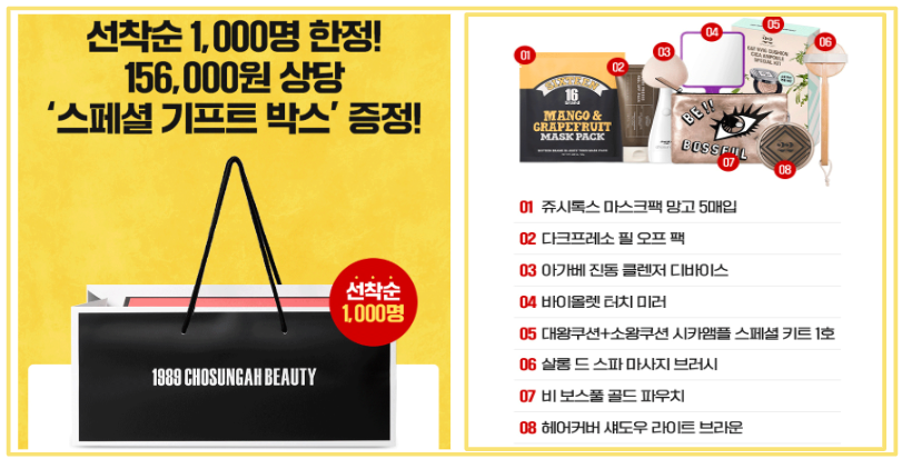 - 증정내용: 156,000원 상당의 조성아 뷰티 제품들
