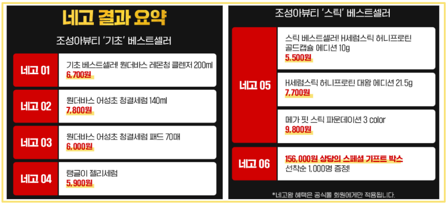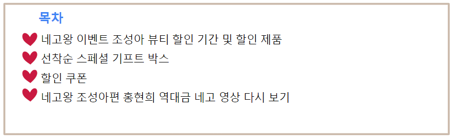 1. 네고왕 조성아 뷰티 이벤트 할인 기간 및 할인 제품