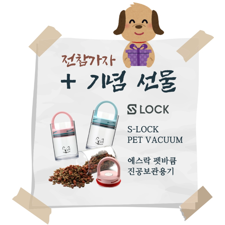 에스락의 펫 바큠은 500g 정도의 사료를 담을 수 있고 휴대가 간편해서 산책이나 여행중에도 사료의 신선도를 유지할 수 있는 장점이 있습니다. 사료를 넣은 후 뚜껑을 눌러서 잠그기만 하면 공기가 자동으로 빠져나가 진공 상태가 된다고 하니 기념 선물 받아서 사용하면 정말 좋겠네요!