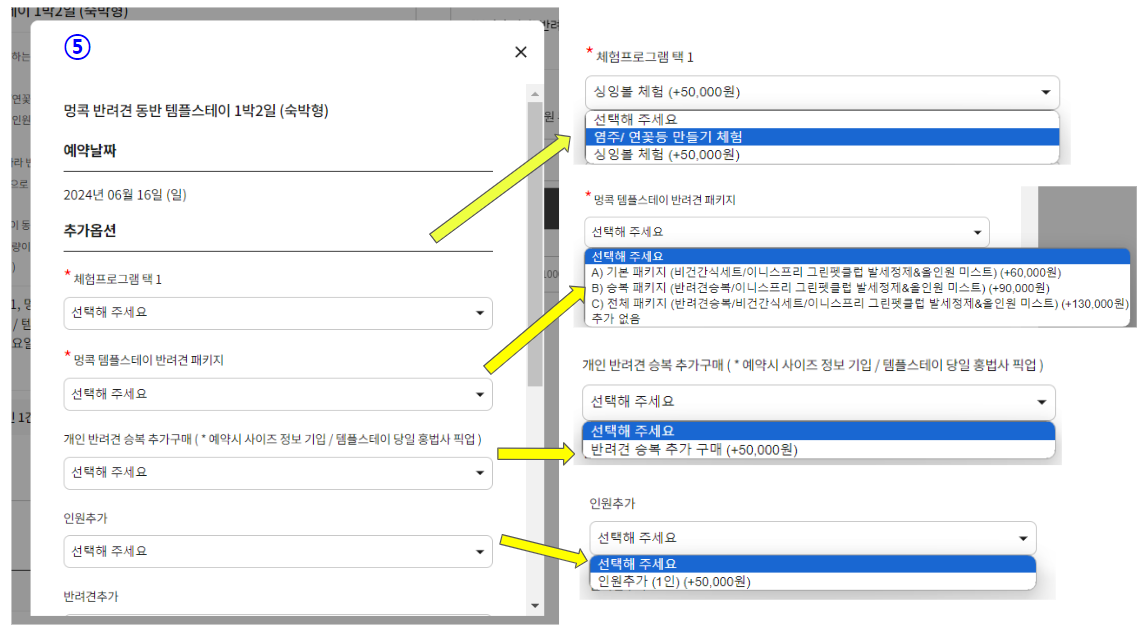 ⑤ [선택] '④' 번의 기본 프로그램 이외 추가로 하시고 싶은 것들이 있을 경우 추가 옵션을 선택(비용 발생)