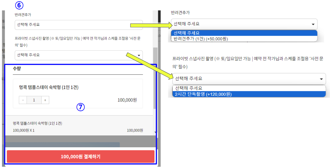 ⑥ [선택] 반려견 추가, 프라이빗 스냅촬영 선택적으로 추가->> 사진 촬영은 일요일만 가능!