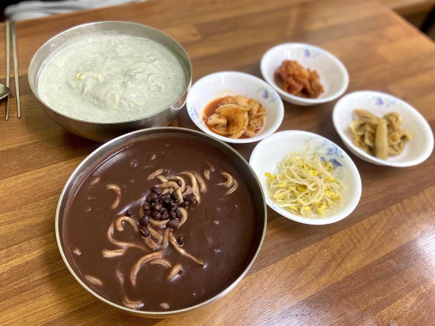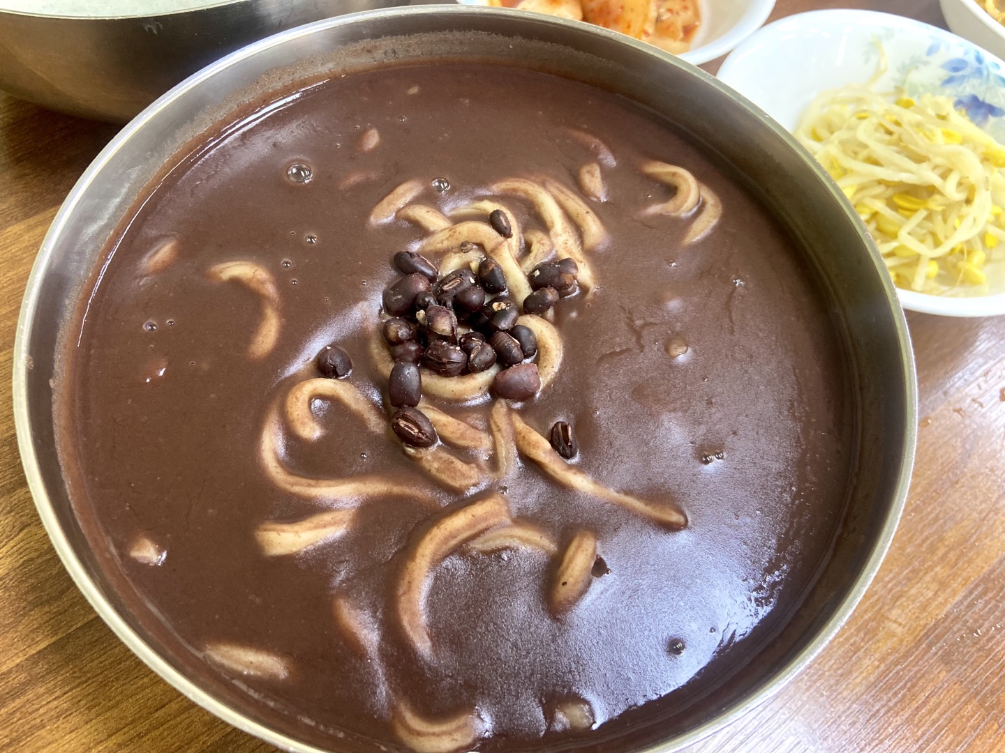 메뉴는 메인 메뉴가 죽이기 때문에 관련 메뉴가 많지만, 계절메뉴인 콩국수와 열무냉면도 유명하다고 한다. 팥죽을 일반적인 팥칼국수, 동지죽은 새알 팥죽인데 개인적으로 동지죽을 더 좋아하는데 팥칼국수 면이 생각보다 쫀득하고 맛있다며 추천을 해주어서 나는 팥죽, 동생은 예정대로 콩국수를 주문했다.