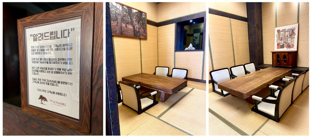 2층에는 좌식 룸이 두 개가 있더라고요. 한 곳은 4인석, 다른 한 곳은 6인석으로 담화나 모임이 있을 때, 또는 아이가 있을 때 머무르기 좋은 곳 같았습니다. 1회 사용 시간은 90분이니 참고 하시면 좋을 것 같아요!