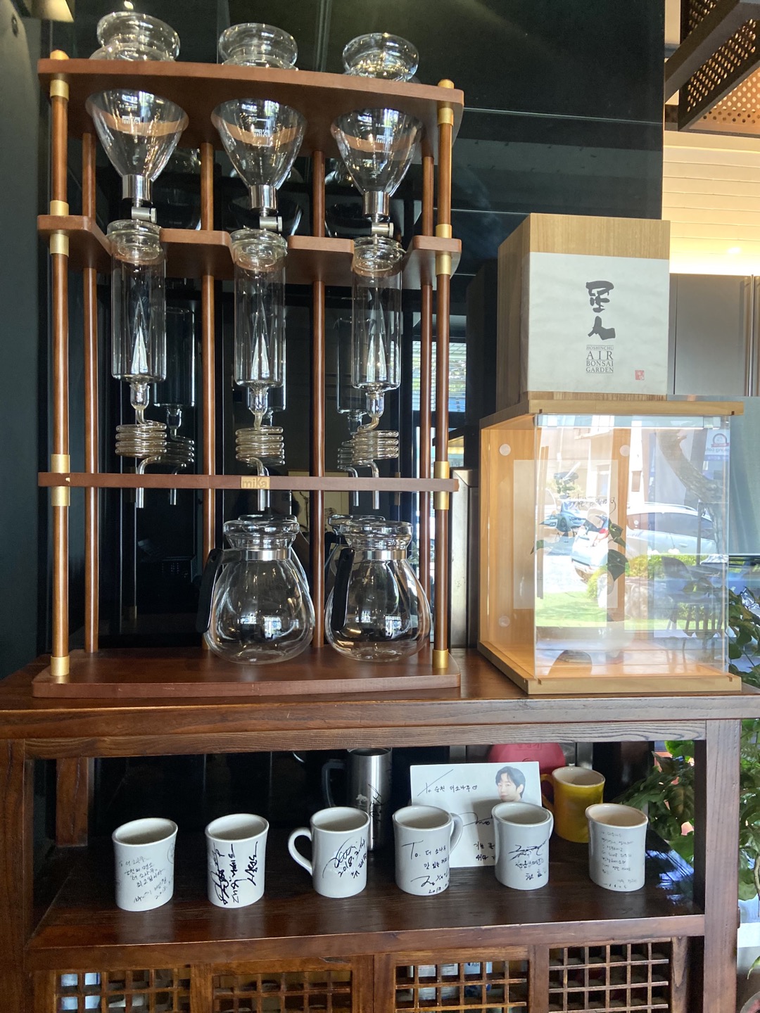 더치 커피는 지금은 안 하는 것 같은데, 아쉽지만 인테리어용으로 깨끗히 관리되어 있었습니다. 커피는 워낙 드시는 분들의 입맛이 다르기 때문에 더치를 메인으로 가는 건 어느 곳이나 어려움은 있는 것 같아요. 그래도 먼지 한 톨 없이 반짝반짝 빛내며 야무지게 자리를 지키는 모습이 보기에 나쁘지 않았습니다.