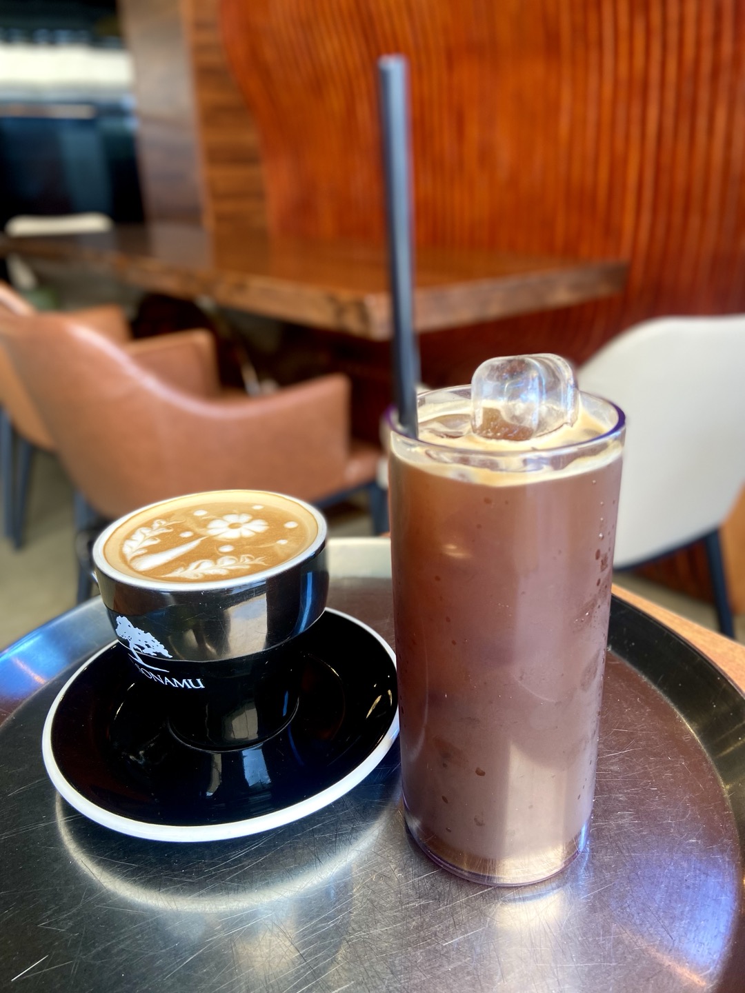 드디어 주문한 바닐라라떼와 아이스 아메리카노가 나왔습니다~ 순천 정원박람회를 모티브로 한 것 같은 예쁜 라떼 아트 ^^ 색다른 라떼 아트를 보니 기분이 좋기도 하고~ 아이스 아메리카노는 조금 구수산 원두로 요청해서 입맛에 맞게 시원하게 마셨어요. ^^