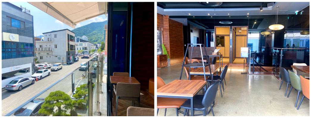 바깥 하늘 보기에도 좋고, 룸에서 중요한 이야기를 나눠도 좋을 더소나무 카페!