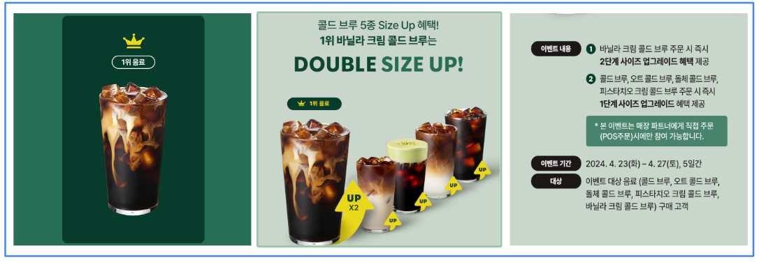 3) 콜드브루 배틀의 위너 사이즈업 혜택- 1위 음료 바닐라 크림 콜드 브루