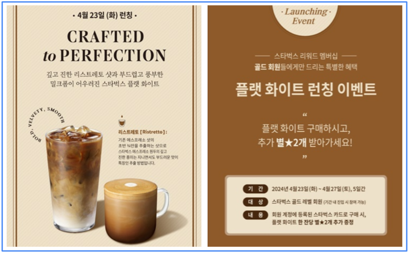 - 내용: 스타벅스 카드로 구매 시 플랫 화이트 한 잔당 별⭐2개 추가 증정