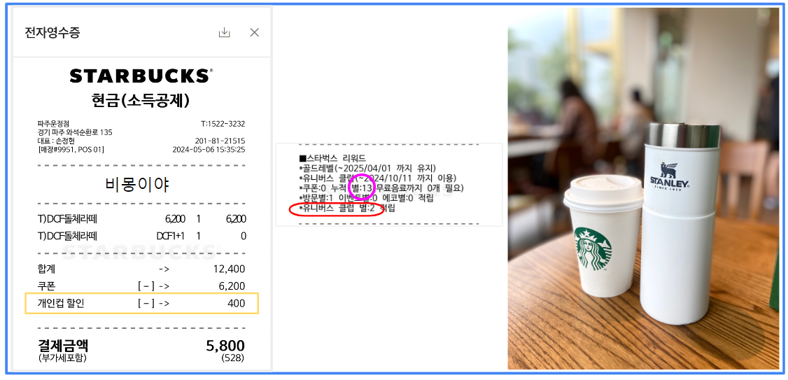 | [스타벅스] Magic 8 Star & 더블스타 이벤트로 무료 음료 쿠폰 받은 후기! 유니버스 클럽 & 1만원 이상 추가 적립까지! 5월 이벤트 (85) | 2024.05.18 |