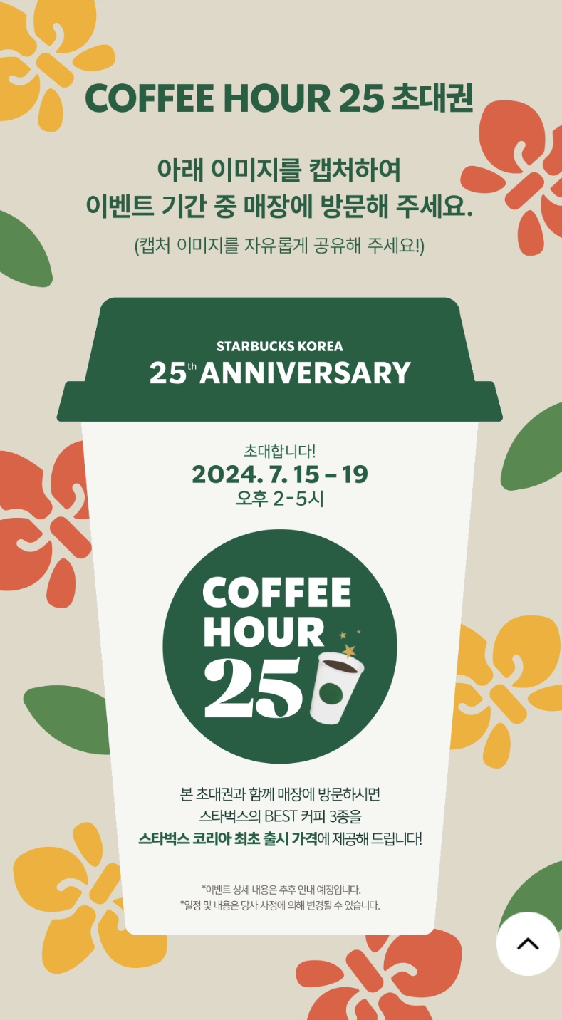 ✔ 아래 'COFFE HOUR 25 초대권' 이미지 보여주시고