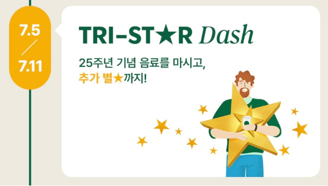 2. 스타벅스 코리아 25주년 기념음료 마시고 추가 별 3개 적립! TRI-STAR DASH!