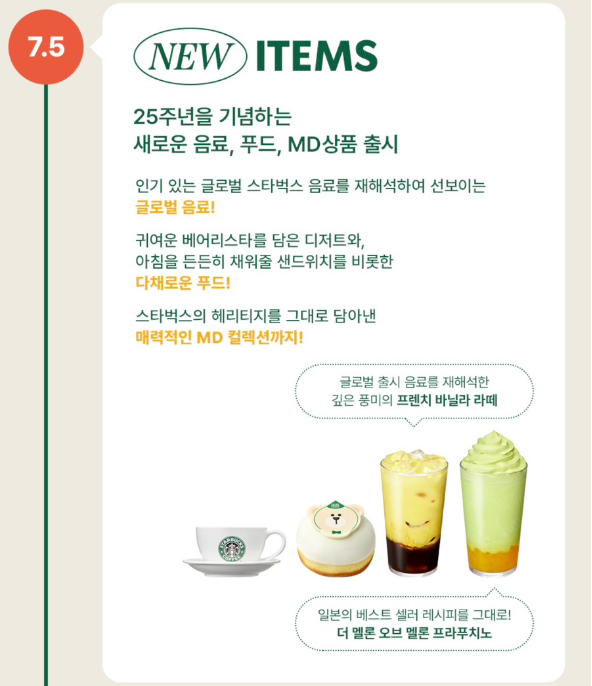 1. 스타벅스 코리아 25주년 기념 새로운 음료, 푸드, MD 상품