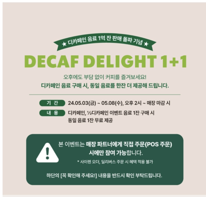 4. 2024 5월 스타벅스 디카페인 음료 1+1 이벤트 주문 시 유의사항