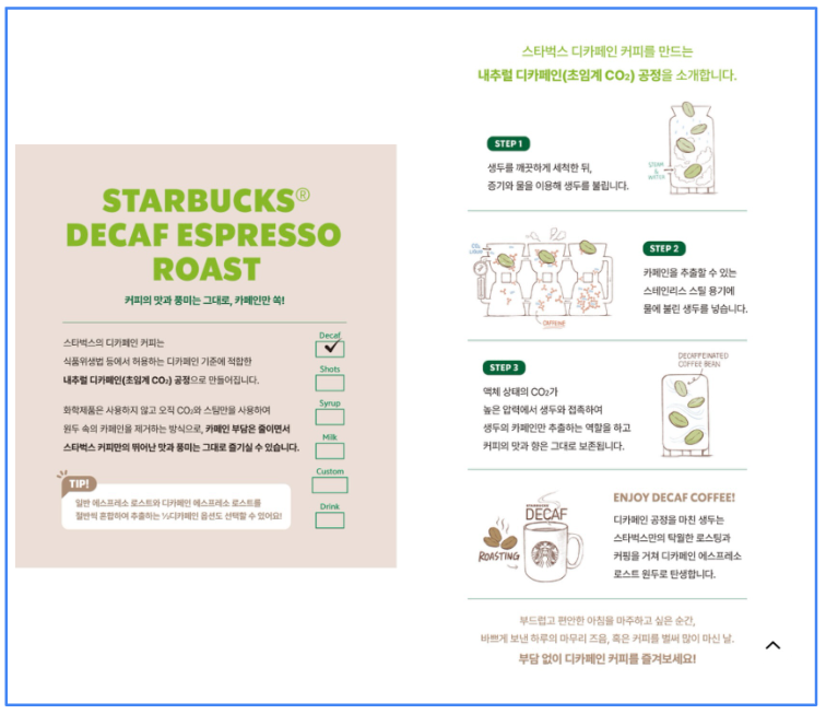 📌 디카페인, 1/2 디카페인 음료만 주문 가능(HOT/ ICED 선택 가능)