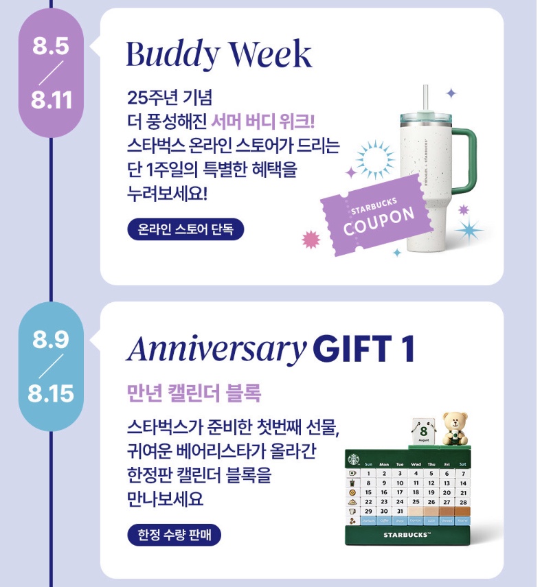 2. 스타벅스 25주년 Part.2 8월 이벤트 상세 내용