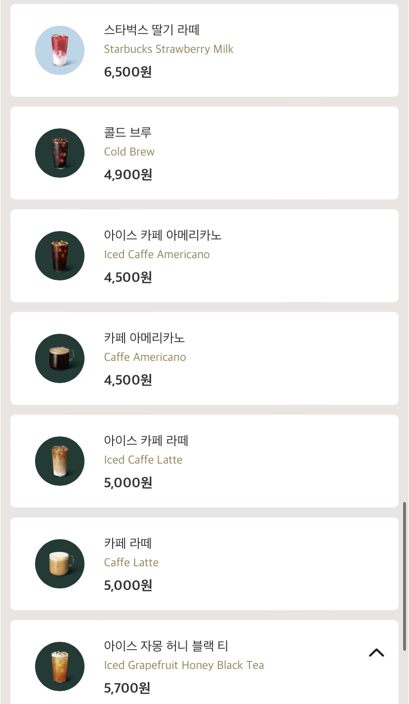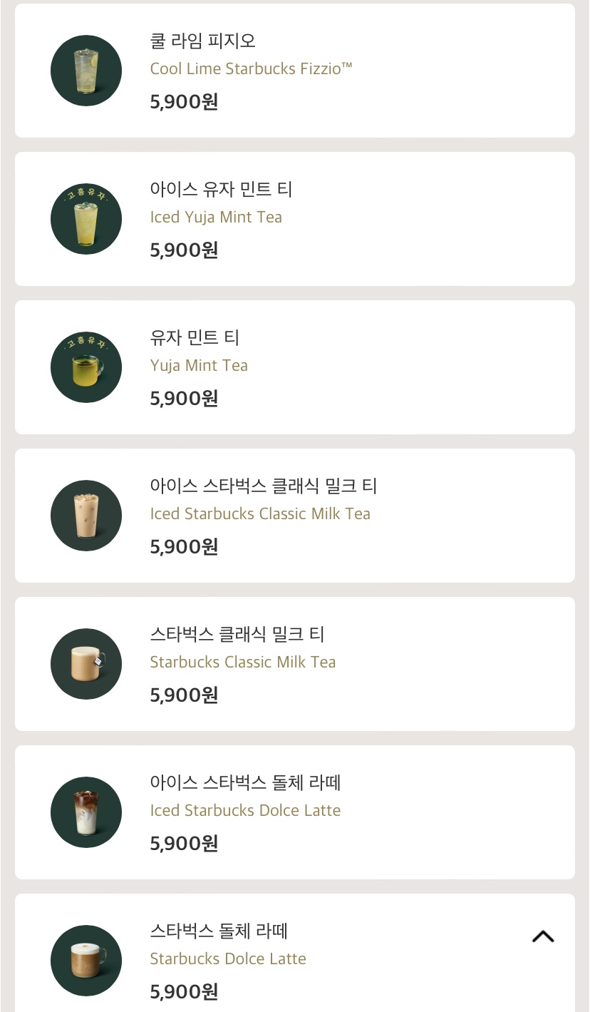 안내드리는 금액은 tall 사이즈 기준입니다!! 보통 같은 음료 ICED/ HOT 가격은 동일하니 참고하세요!