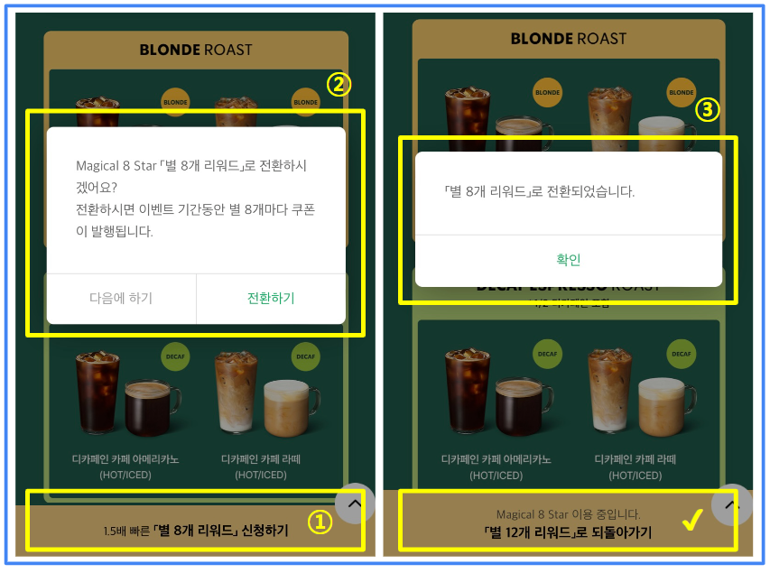 4. 스타벅스 Magical 8 Star(별 8개 리워드) 신청 방법