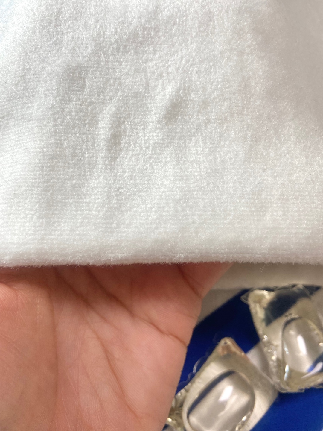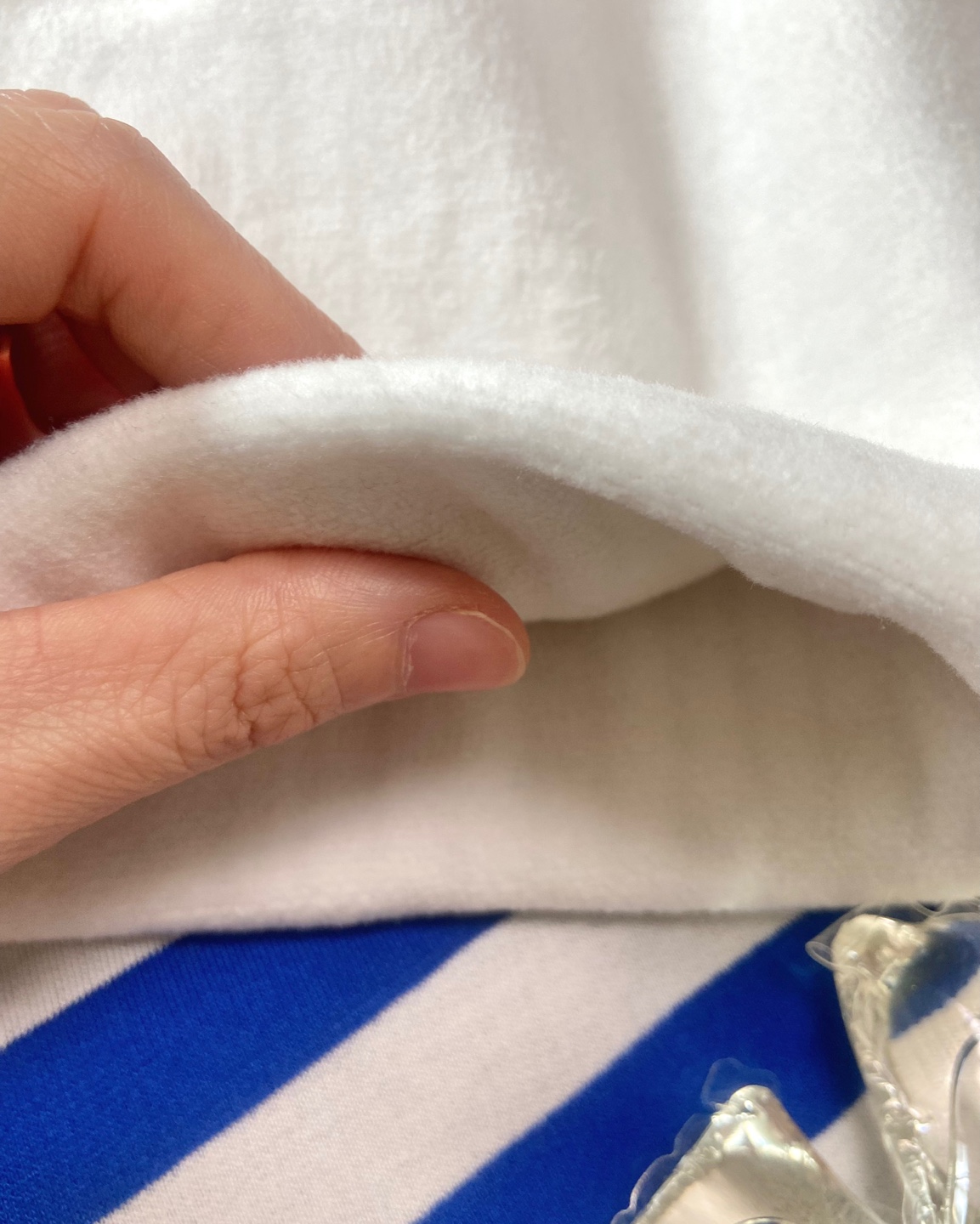얼룩이 심하지는 않았지만 일비아 버블코튼 캡슐 세탁세제를 한 알 넣고 섬유유연제를 패스했는데, 결과는 아래 사진과 같이 세탁 후 옷감이 더 하얘지고 얼룩이 보이지 않았고 자주 사용해 눌린 패브릭이 한올 한올 살아나 포근함이 더욱 강조되었어요. 느껴지시나요~