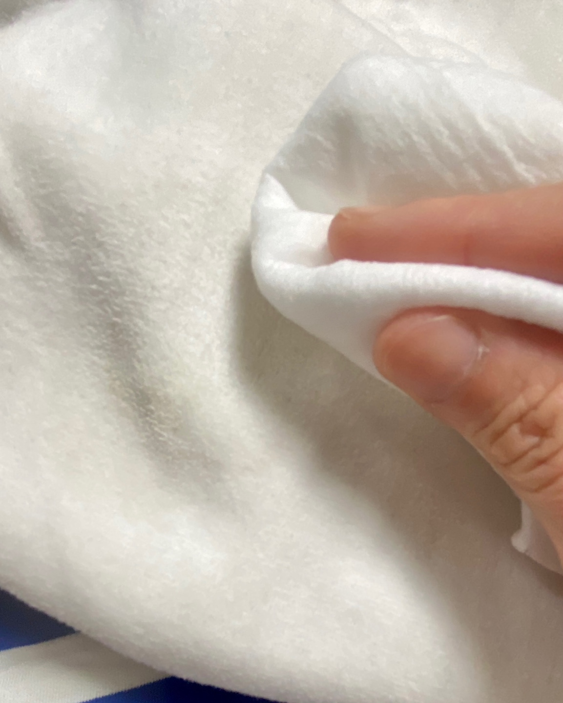 - 옷감을 살살 문질러 얼룩제거제를 젖은 수건으로 닦아주세요.