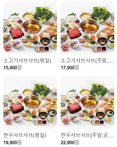 평일에 오전 얼리버드 이벤트로 10시 30분~ 11시 이전에 입장하는 분들께는 평일 점심 가격에서 인당 1,000원씩 할인해주고 있는데, 아까비!~ 11시 10분에 도착해서 소고기 샤브샤브 평일 점심 메뉴 정가로 먹게 되었습니다.