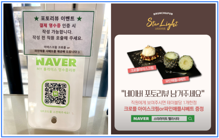 얼른 찍은 매장과 음식 사진으로 진심 가득한 리뷰를 작성하고 파인애플 샤베트 대신 '크로플 & 아이스크림'을 선택했는데요, 정말 마지막까지 감동을 주는 스타라이트.
