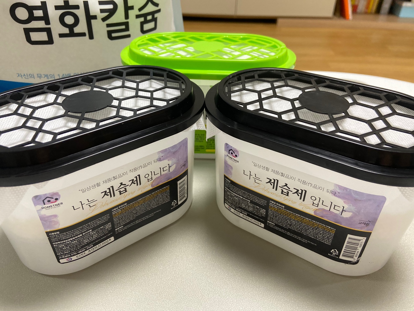 ④ 준비된 3개의 제습제 본체를 닦고 리필용 제습제를 채운 후 완성된 모습입니다.