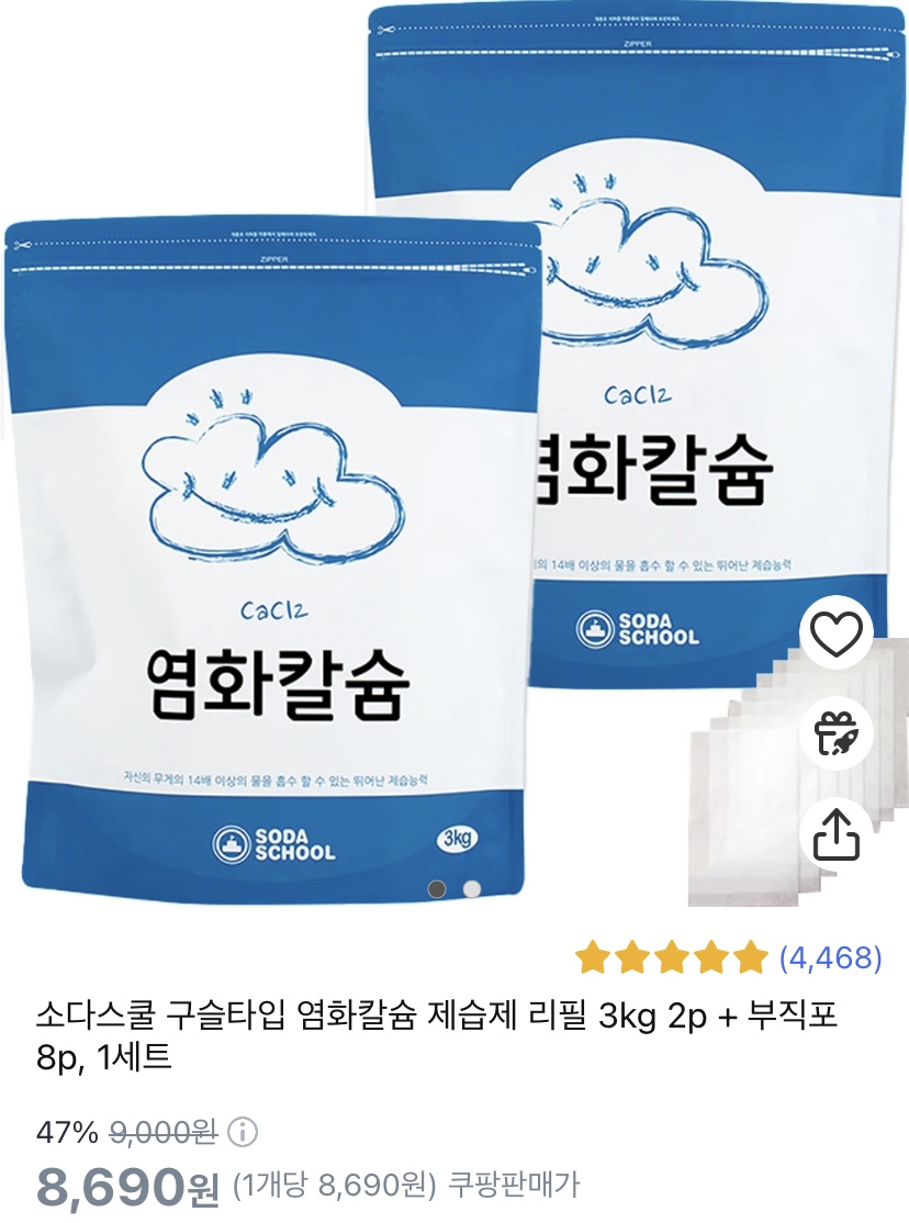 - 제품명: 소다스쿨 구슬타입 염화칼슘 제습제 리필