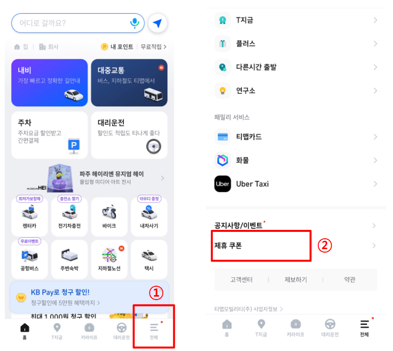 스타벅스 티맵 쿠폰 확인 방법