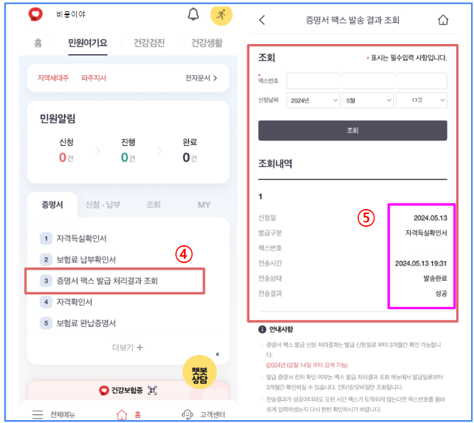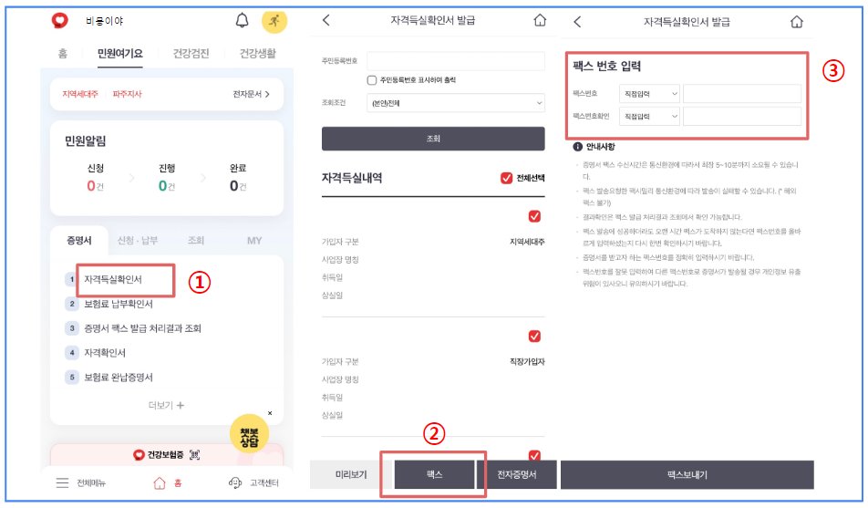 2. 건강보험자격득실확인서 팩스로 전송 및 발급 방법
