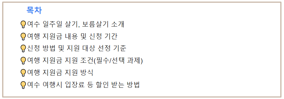 2. 전남 여수 일주일 살기, 보름살기 여행 지원금 내용 및 신청 기간