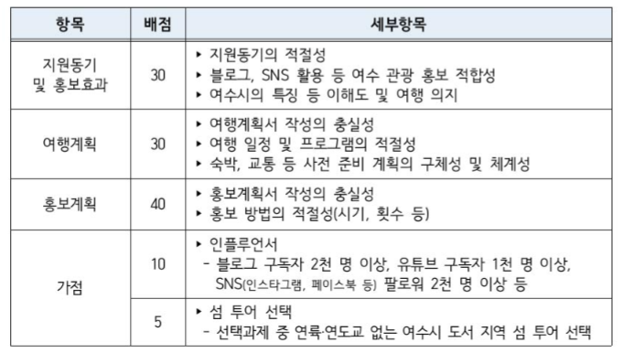 3. 전남 여수 일주일 살기, 보름살기 여행 지원금 신청 방법 및 지원 대상 선정기준