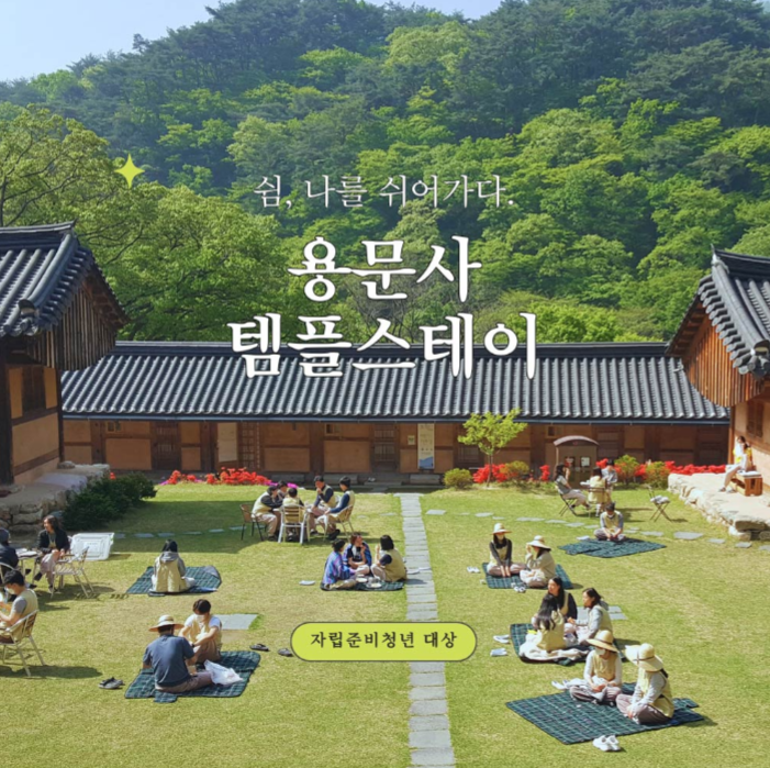 천년 된 은행나무와 아름다운 자연이 있는 양평 용문사에서 템플스테이에 청년들을 초대합니다. 취지는 바쁜 일상 속 지친 몸과 마음을 돌아보고,, 이지만 잠시 정리가 필요하거나 템플스테이를 경험해보고 싶은 청년은 누구나 신청이 가능하기 때문에 날 좋은 6월 둘 째주 주말 일정 되는 분들은 지원해보세요. ^^