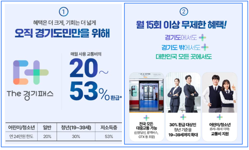 - 월 환금 한도 횟수 제거: K패스는 월 15회에서 60회까지의 이용에 대한 환급을 제공하지만, 더 경기패스는 15회 이상 이용시 무제한 환급을 제공