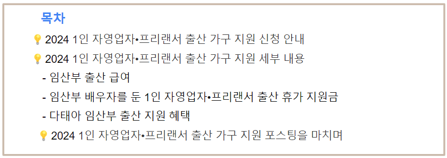 2024 1인 자영업자, 프리랜서 출산 급여 지원 목차