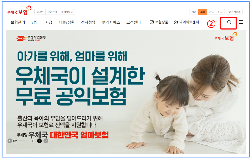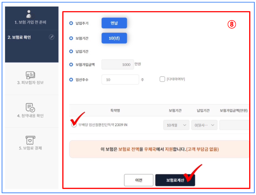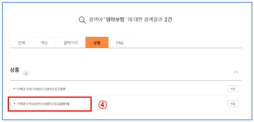 ④ '무배당 우체국대한민국엄마보험 2309IN' 선택