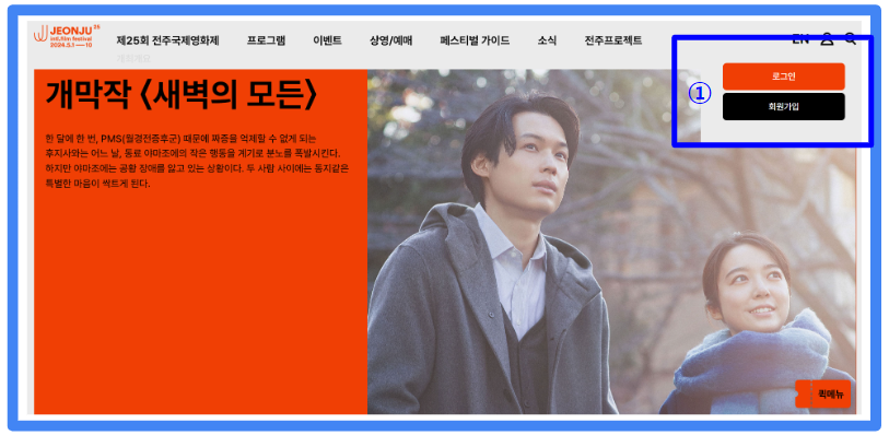 ①전주국제영화제 홈페이지 접속 후-> 로그인(아이디가 없다면 메일 주소로 가입)