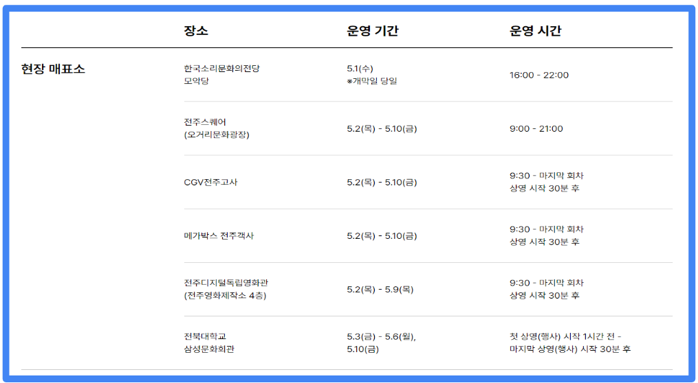 6. 2024 전주국제영화제 오프라인(현장예매) 방법