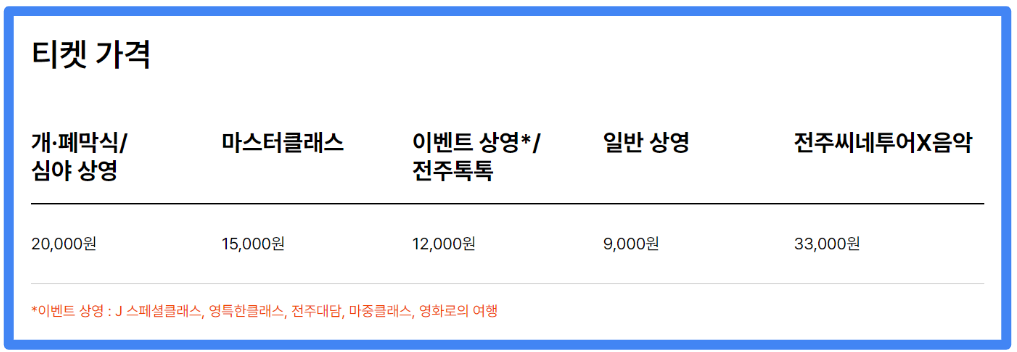 2. 2024 전주국제영화제 티켓 가격 및 할인 정보