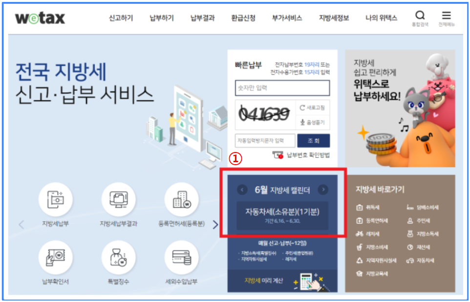 ① 위택스 홈페이지 로그인-> 6월 자동차세 1기분 안내 선택